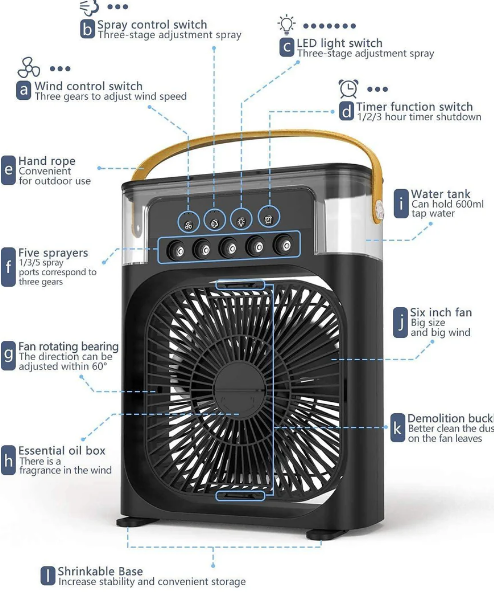Functions: Cooling Fan + Humidifier + Air Circulator